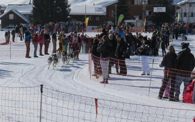 Eine grosse Attraktion an Schlittenhunderennen sind die Hunde im "Stakeout" Gelände rund ums Start- / Ziel-Gebiet. Immer wieder gibt es Auseinandersetzungen zwischen Schlittenhunde-Teams und Hunden von Zuschauern. Bringen Sie deshalb Ihren Hund nicht zum Rennen, oder halten Sie ihn immer an der Leine und gehen mit ihm keinesfalls zur Rennpiste.