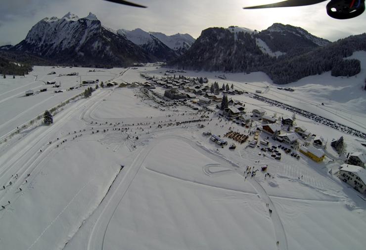 Bei Sonnenschein und Schneetreiben.